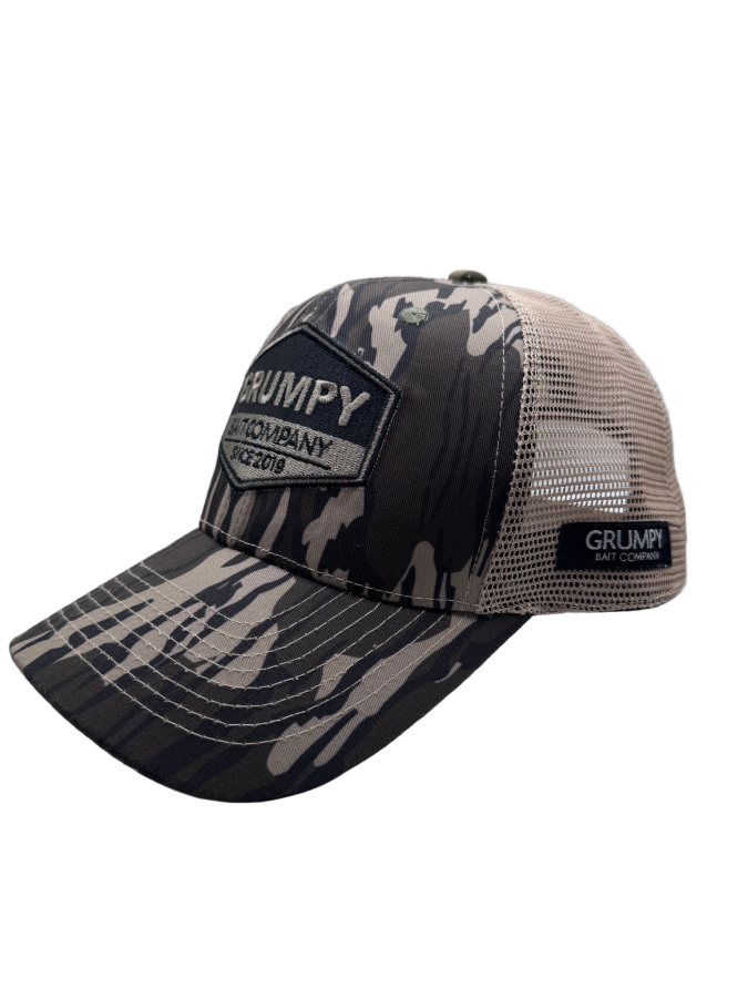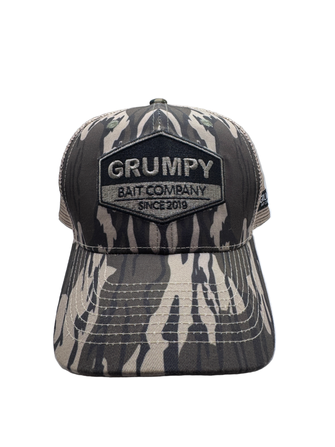 Grumpy Bait Company ball caps are one size fits all and have adjustable straps.