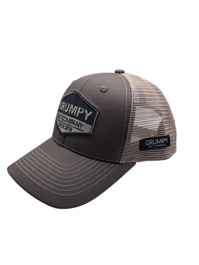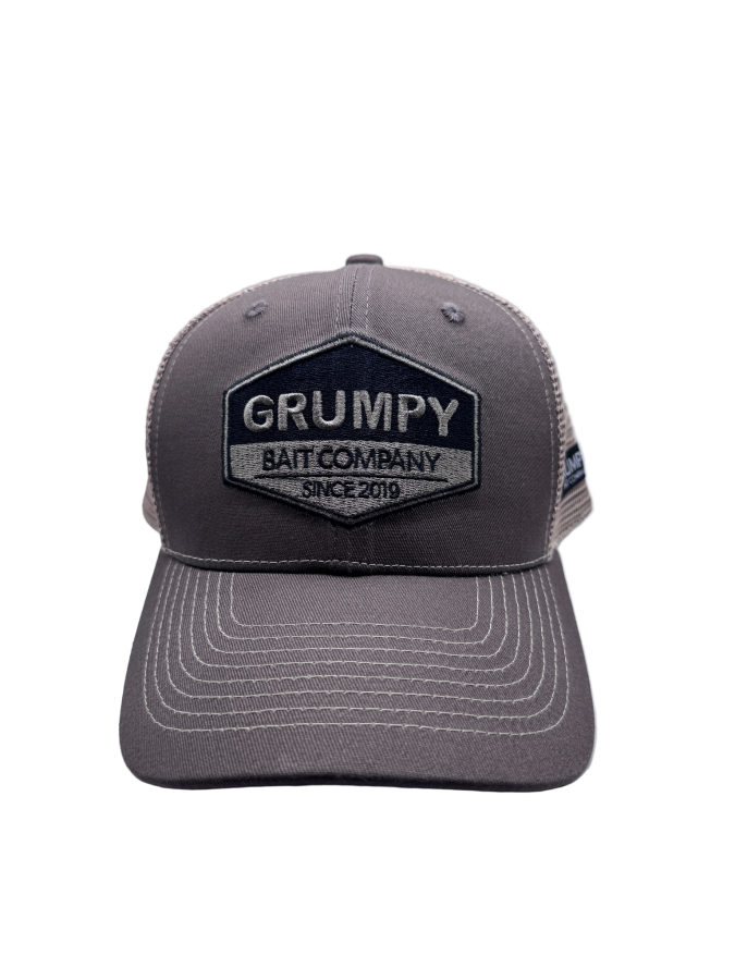Grumpy Bait Company ball caps are one size fits all and have adjustable straps.